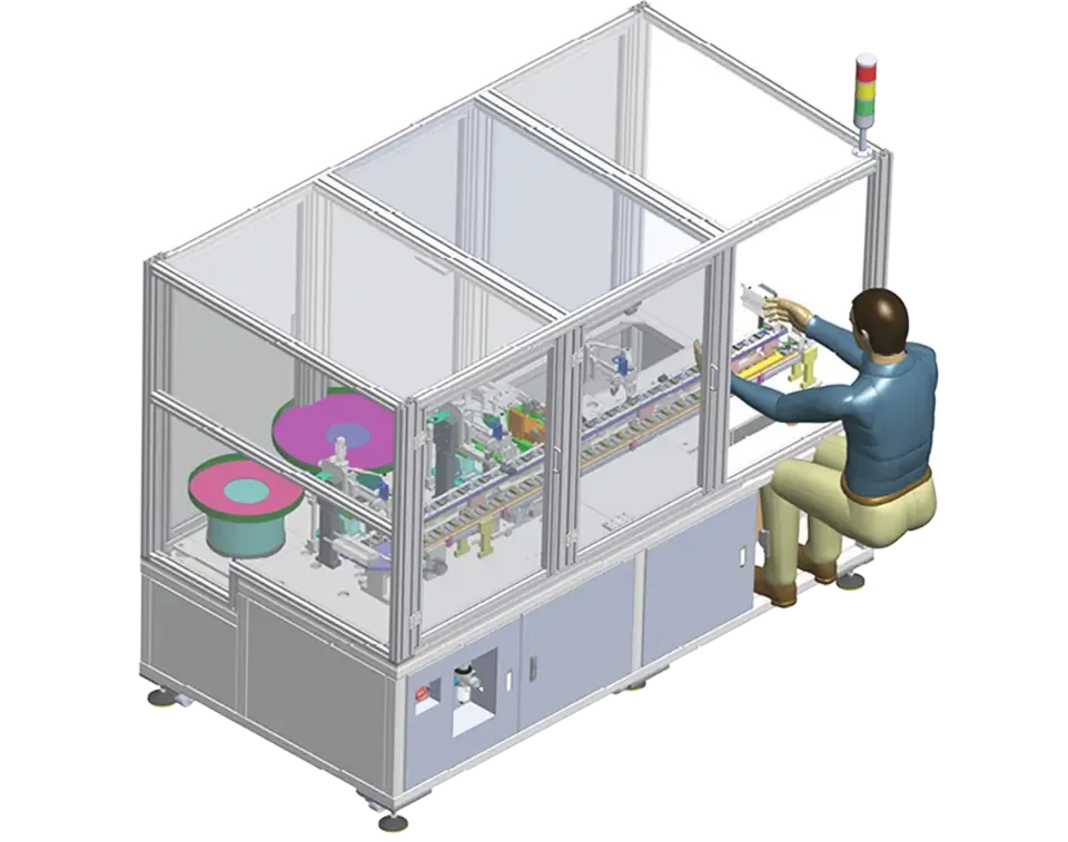 Designs and builds advanced, fully-automated production lines for clients (manual material feeding and equipment monitoring still required).